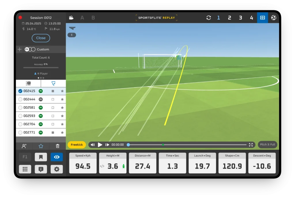 SportsFlite captures every detail of the strike – from ball flight to spin rate – showing exactly what separates a good free kick from a great one. It gives players and coaches the tools to experiment, adjust, and perfect their technique, building accuracy, consistency, and power when it counts.