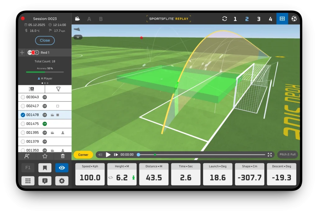 Corners can change games – but only if the delivery is spot on. SportsFlite tracks spin, shape, and decent in real time, giving players the insight to perfect every type of ball. Whether it’s a near-post flick, a back-post bullet, or a whipped delivery into the danger zone, this is how consistency is built.